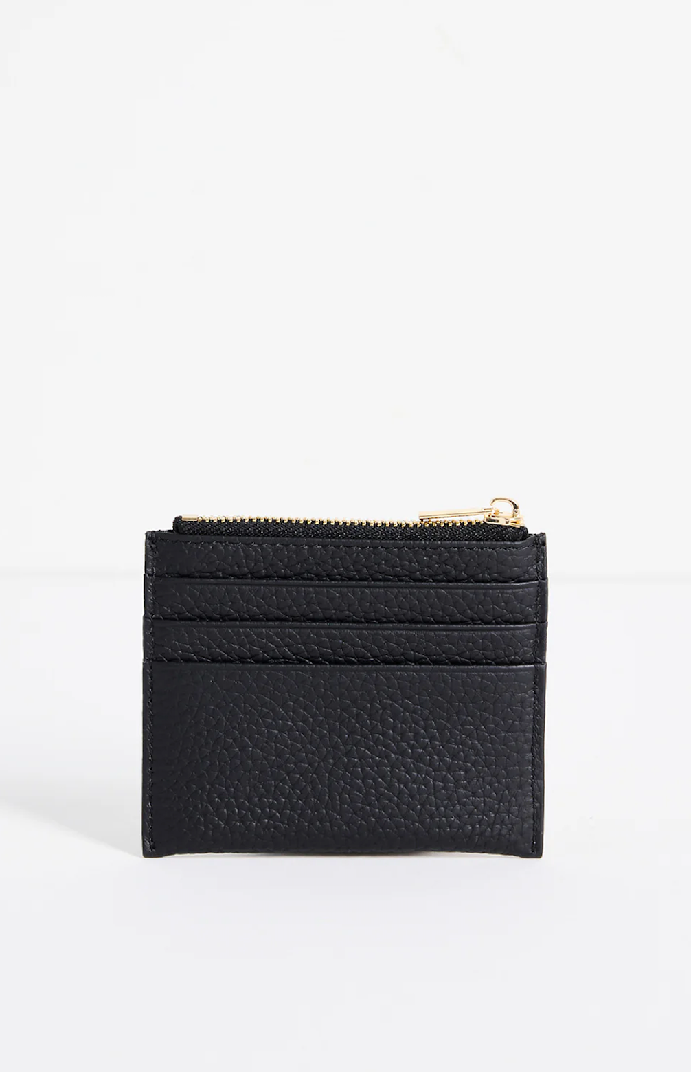 Compact and stylish, the Small Leather Card Holder by Among The Brave is your perfect on-the-go companion. Crafted from premium leather, it features a sleek gold embossed "Among The Brave" logo and a matching gold zip closure. Designed for convenience, it includes front card slots for easy access and a secure zip pocket for your coins.
