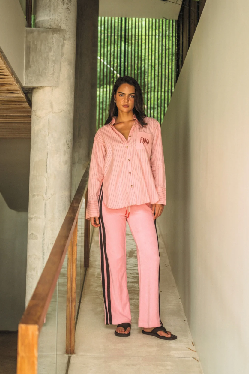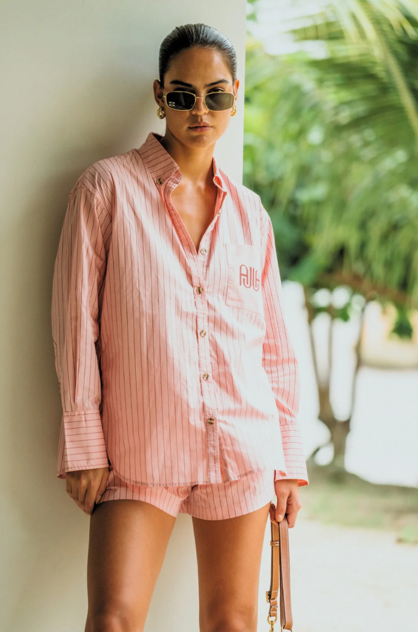 Our best-selling shape in a soft new colour. The AJJA Pocket Shirt in Blush Pink is made from 100% premium soft cotton, and is an investment-worthy piece for your wardrobe. Featuring a relaxed curved hemline, exaggerated cuffs, buttoned collar and front pocket with AJJA design. Wear with our matching AJJA Stripe Short in Blush Pink and your fave sneakers for an effortlessly cool everyday look.