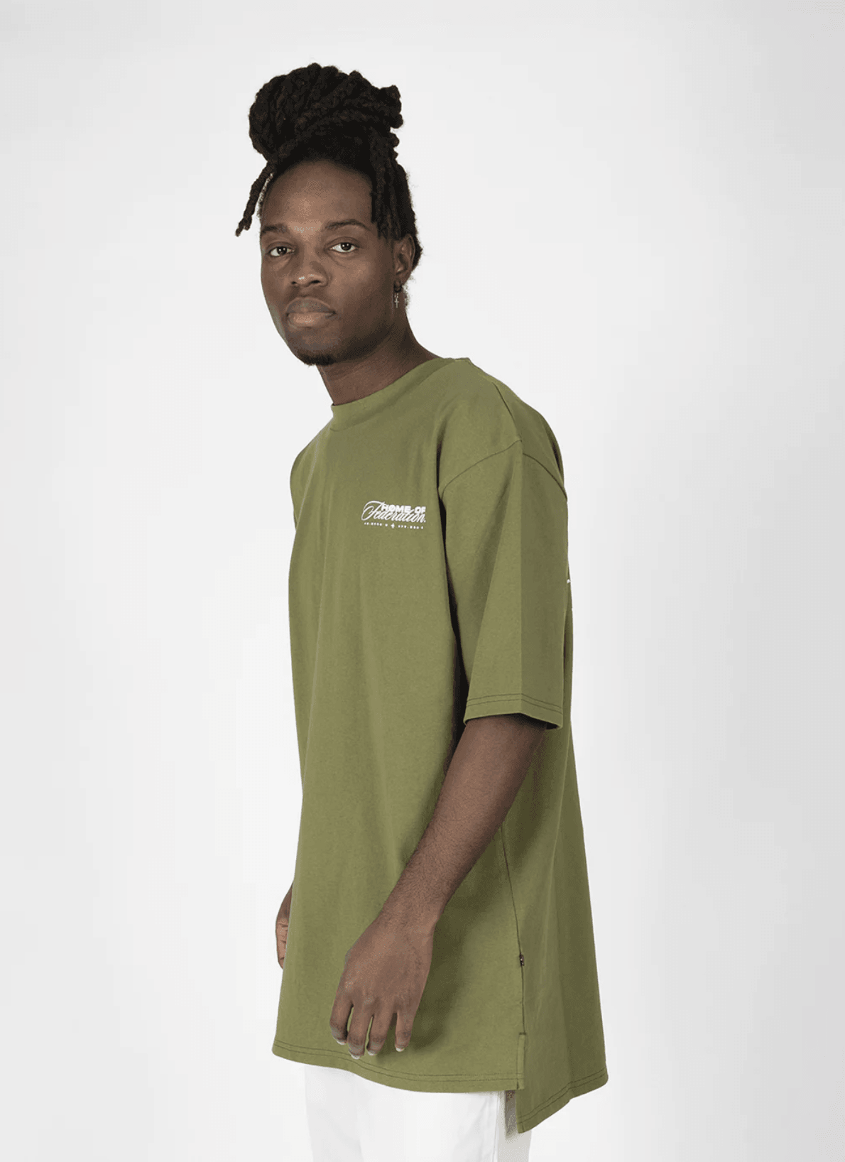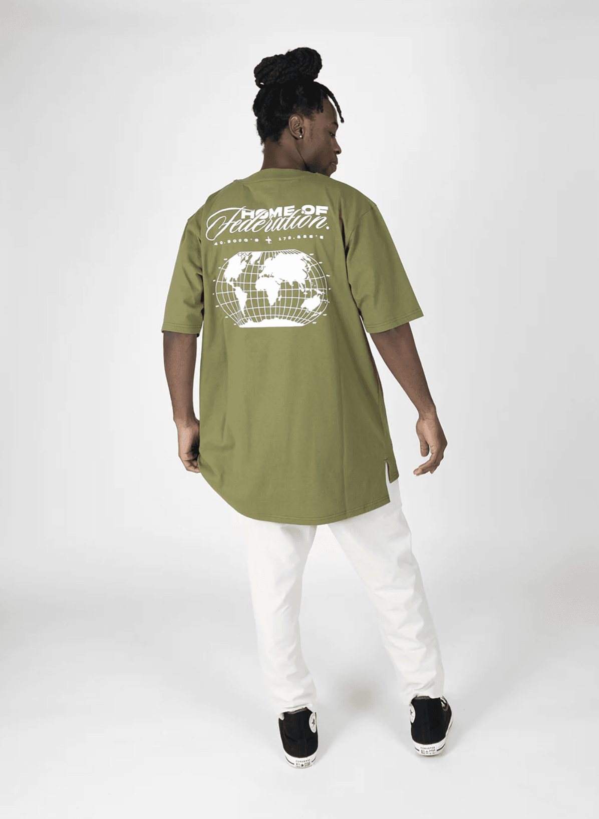 The Goode Tee, a classic fit, easy-to-wear tee. Super soft and looks great with everything. Featuring our tie dye print with the Federation logo printed across the top right side of the chest and a large globe print on the back.