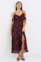 Turn heads in the Belfast dress, a romantic showstopper with cascading ruffles and delicate strappy sleeves. Crafted in a flowing bias cut, it hugs in all the right places and moves like a dream. The soft black base blooms with vivid red poppies for a bold yet feminine statement.