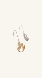 Sculpted with a molten disc from one pin and a freshwater pearl from the other these gorgeous light asymmetric earrings are a must.