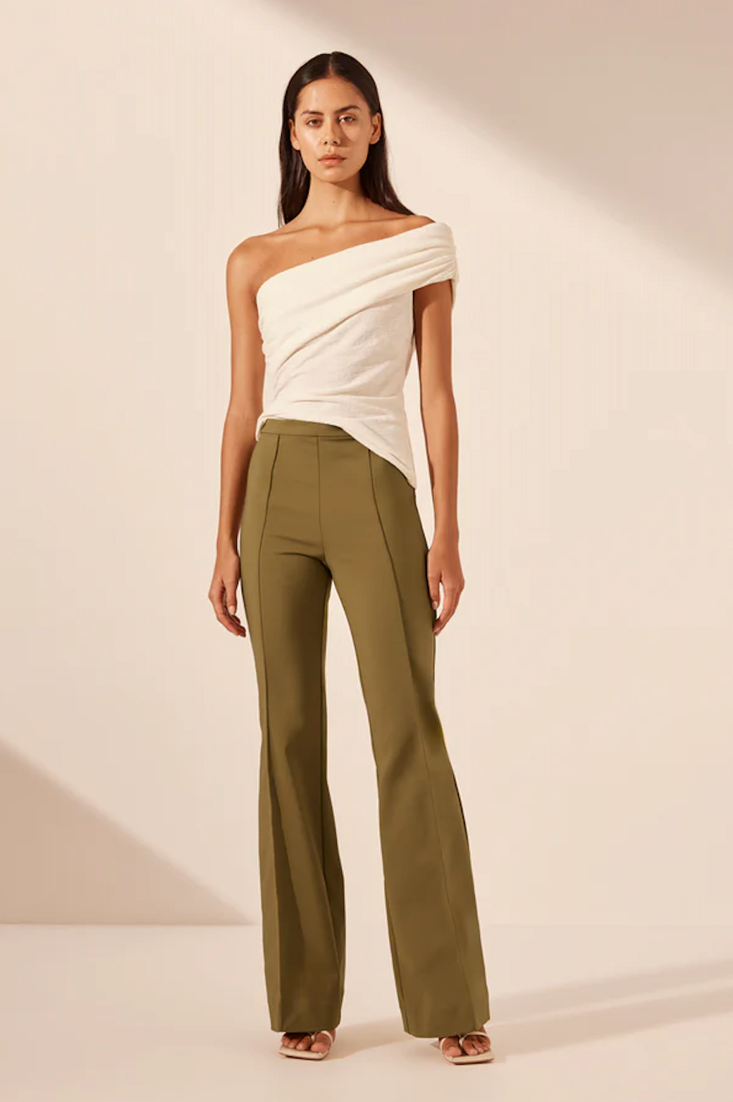 SHONA JOY Lani Boot Cut Flared Pants - Army Green