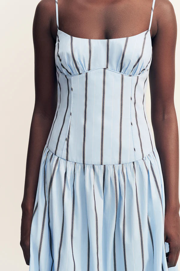 Panelled bustier maxi dress in the bather stripein a premium cotton.